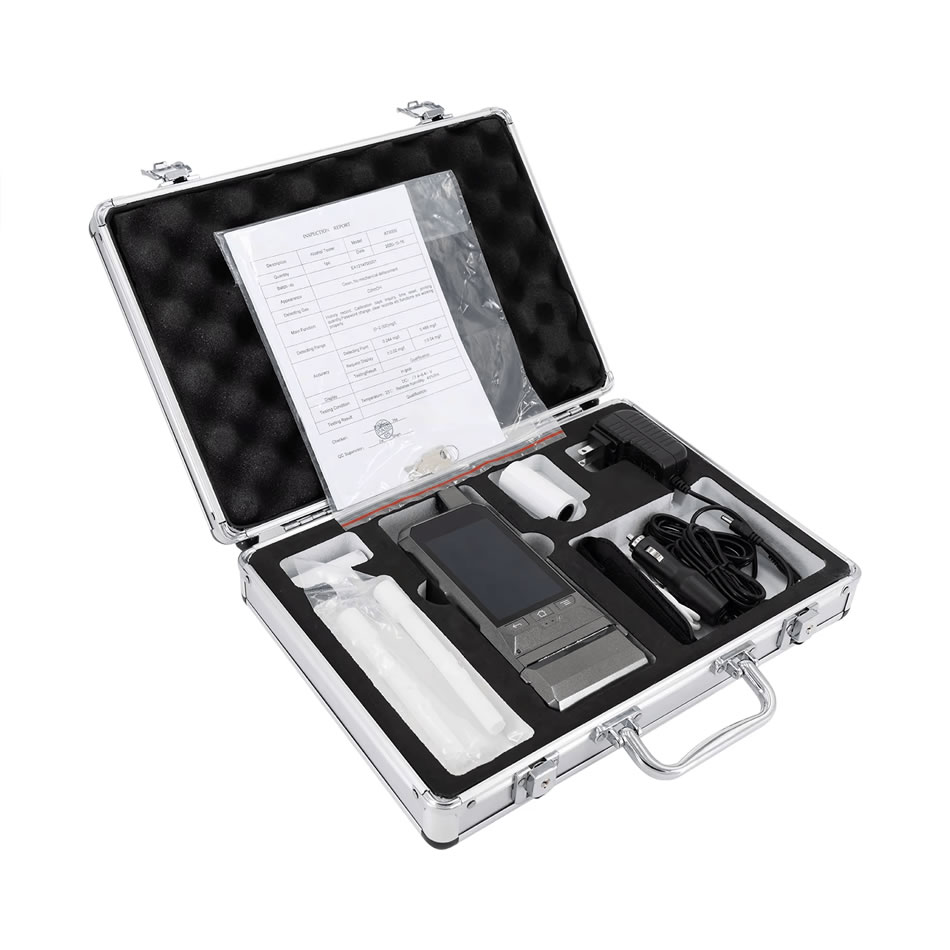 El AT9000 es un alcoholímetro portátil avanzado con un diseño vanguardista. Incorpora un módulo sensor de celda de combustible intercambiable que ofrece precisión profesional, alta sensibilidad, gran capacidad anti interferencias y fácil calibración. El instrumento cuenta con una pantalla táctil LCD a todo color con una interfaz intuitiva y fácil de usar en exteriores.